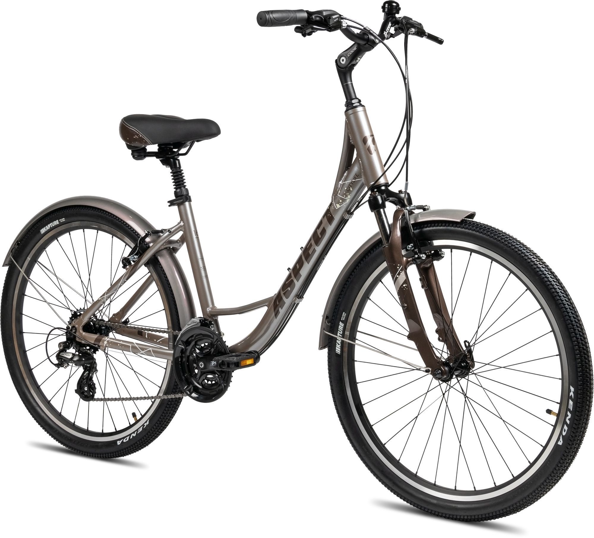 Бренд ASPECT Модель 26 CITYLIFE Год 2023 Серия CITYLIFE Материал рамы Алюминий (Alloy) Тип вилки Амортизационная (пружина) Вилка/регулировки ZOOM 141 45mm Диаметр колес 26" Обода Alloy Double Wall Резина Kenda K1118 26x1.95 Тормоза Ободные (V-brake) Уровень оборудования Любительский Шифтеры Shimano Tourney ST-EF500 Переключатель передний Shimano Tourney FD-TY500 Переключатель задний Shimano Altus RD-M310 Кассета Shimano HG200-7 12-32T Каретка 68*119mm Шатуны PROWHEEL Alloy 24/34/42T*170mm Количество скоростей 21 Подседельный штырь Alloy 31.6mm Втулка передняя Joytech Alloy 32H Пол/возраст Женский Втулка задняя Joytech Alloy 32H -